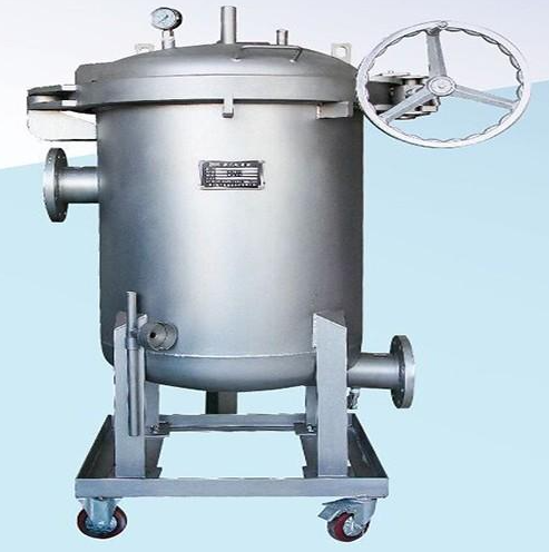 搖臂袋式過濾器的結(jié)構(gòu)設(shè)計(jì)是由四套搖錘式環(huán)首螺栓將頂蓋和濾筒密封鎖緊,使得搖臂袋式過濾器可以承受極高的過濾壓力以及水錘式的壓力沖擊。搖臂袋式過濾器主要是由濾筒,過濾網(wǎng)籃,過濾袋三部分組成,設(shè)備得結(jié)構(gòu)緊湊簡單。需要過濾的液體在經(jīng)過濾器過濾之后,流進(jìn)過濾袋,經(jīng)過濾袋的攔截作用后,由搖臂袋式過濾器的出口流出。搖臂袋式過濾器的進(jìn)出口設(shè)計(jì)一般是采用側(cè)進(jìn)底出方式,方便清洗。
