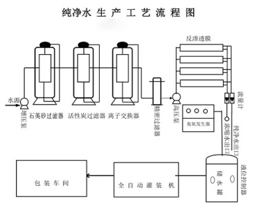 石英砂過濾器-活性炭過濾器-離子交換器-精密過濾器-反滲透膜-臭氧發(fā)生器-儲(chǔ)水箱